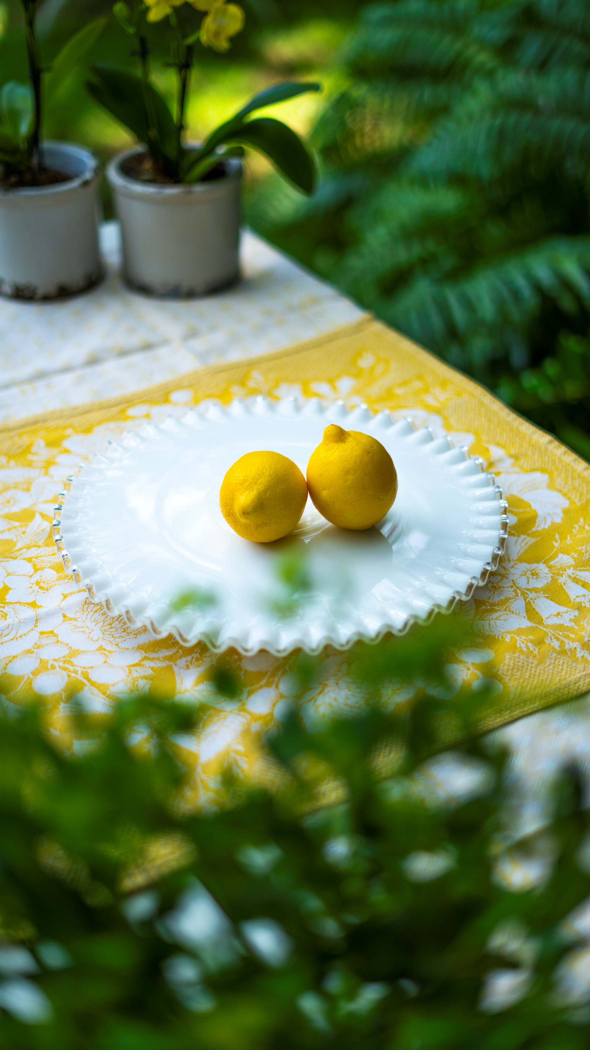 Fluted Milk Glass pedestal. 12″ diameter and 1.25″ tall.